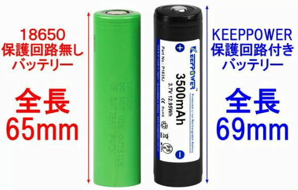 【即日発送】KEEPPOWER 18650 P1835J 3500mAh 保護回路付き リチウムイオンバッテリー 日本製セル ケース付き 2本組 全長69mm
