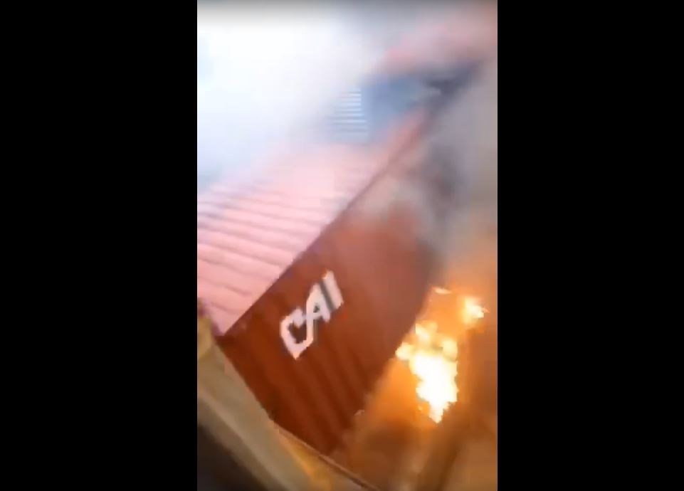 こちらの記事では動画で発火の様子と荷降ろしされている際の状態を見ることが出来ます。