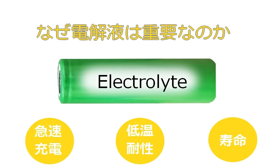 どのような状況でも電解液に化学的副反応が起きないことが大切です。安定性のために添加剤が加えられています。