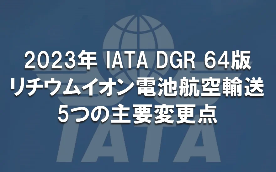 2023年のIATA DGR(航空危険物規則書) 第64版 改定により、航空輸送によるリチウム電池(リチウムイオン電池、リチウム金属電池)輸送について、主要な5つの変更があります。