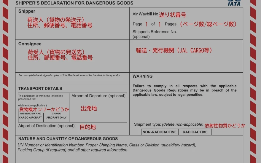 IATAの申告書をベースにしますが、ANA CARGOやJAL CARGOの危険物申告書も基本は同じです。