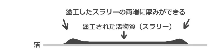 金属箔にスラリーを塗布する際、両端は中央部に比較して厚みが大きくなります。
