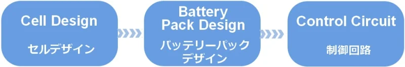 セル設計、セルによるバッテリーパック設計、制御回路設計があります。